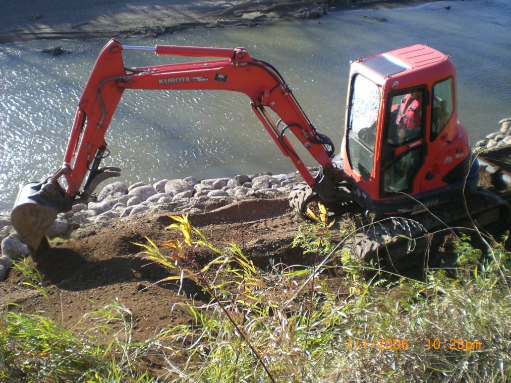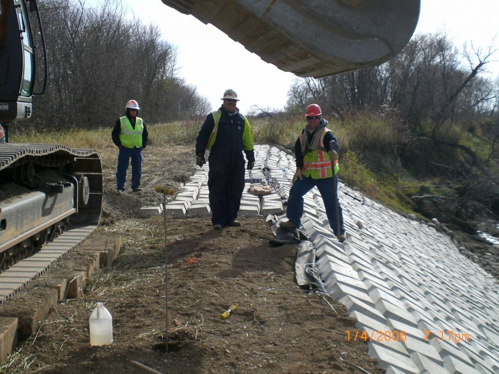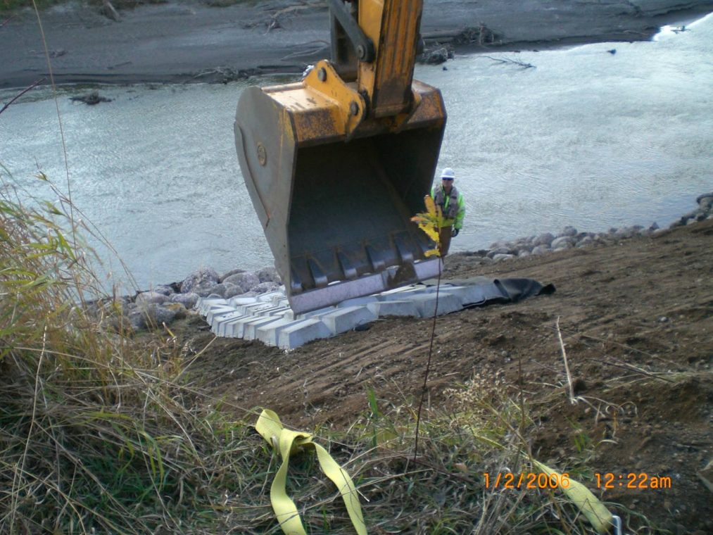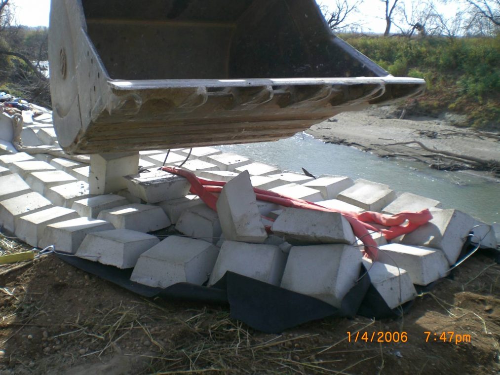 From time to time, storms cause damage beyond our expectations. In this case, the riverbank eroded and exposed a section of pipe. The Northern Clearing crew restored the riverbank and set concrete armor plating over the area to protect from future incident.