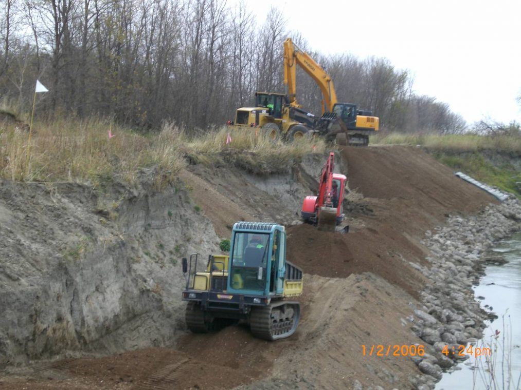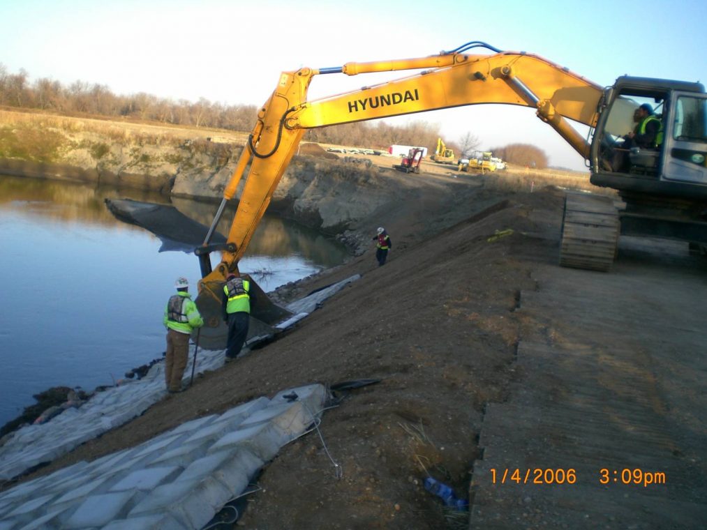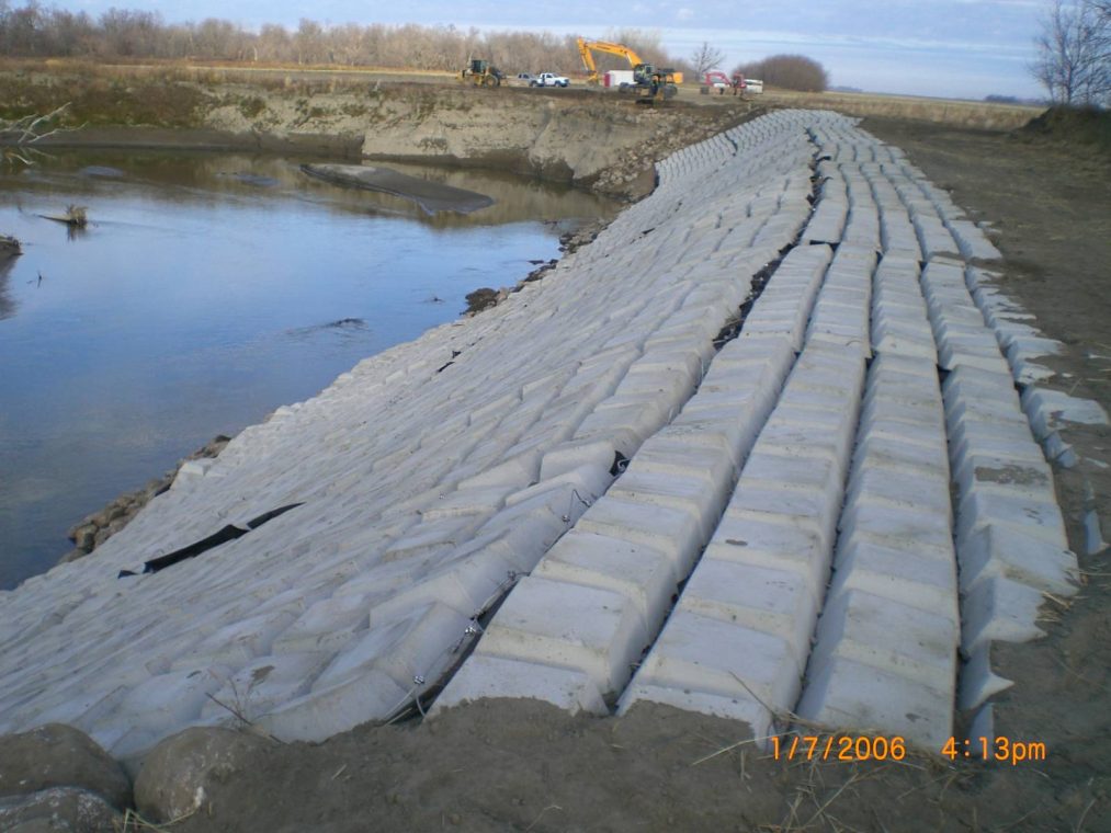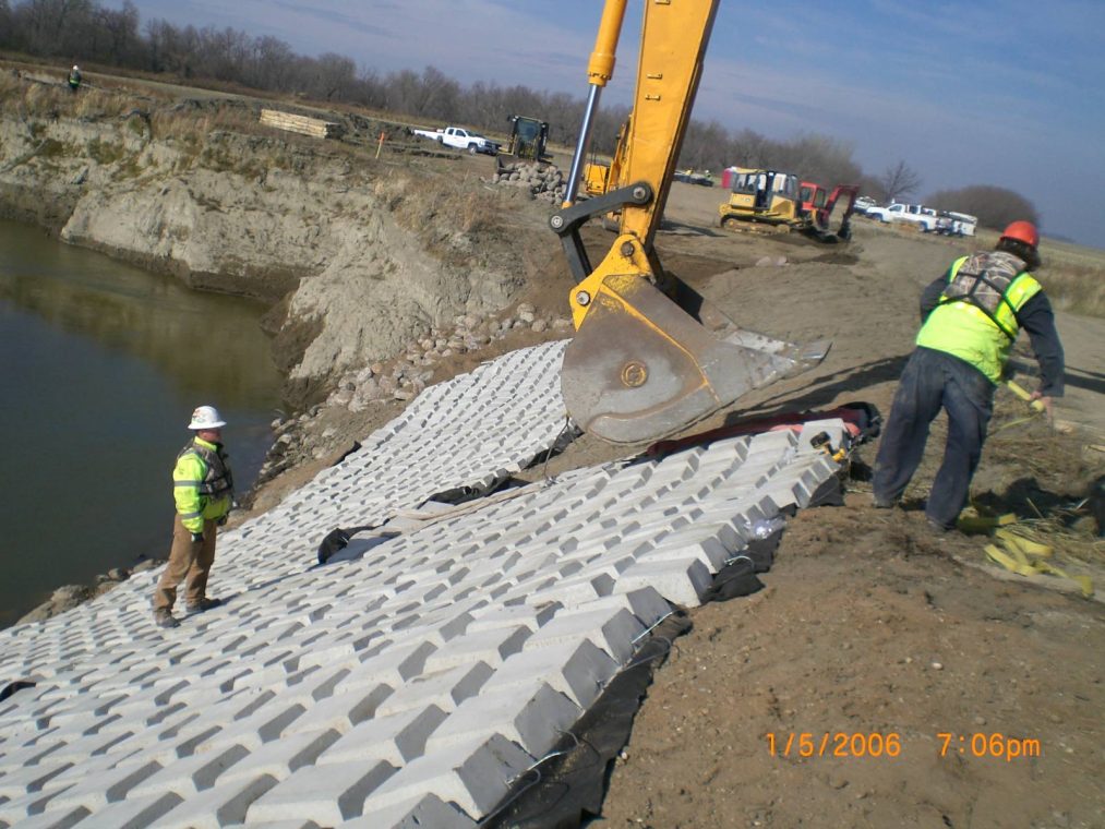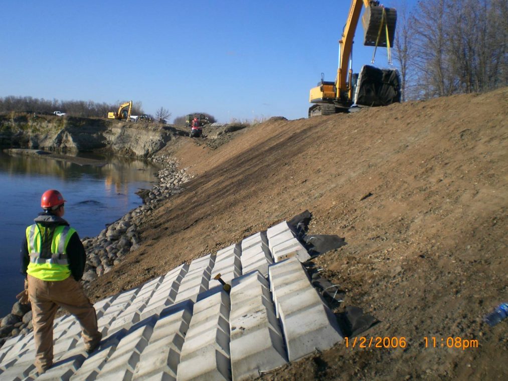 From time to time, storms cause damage beyond our expectations. In this case, the riverbank eroded and exposed a section of pipe. The Northern Clearing crew restored the riverbank and set concrete armor plating over the area to protect from future incident.